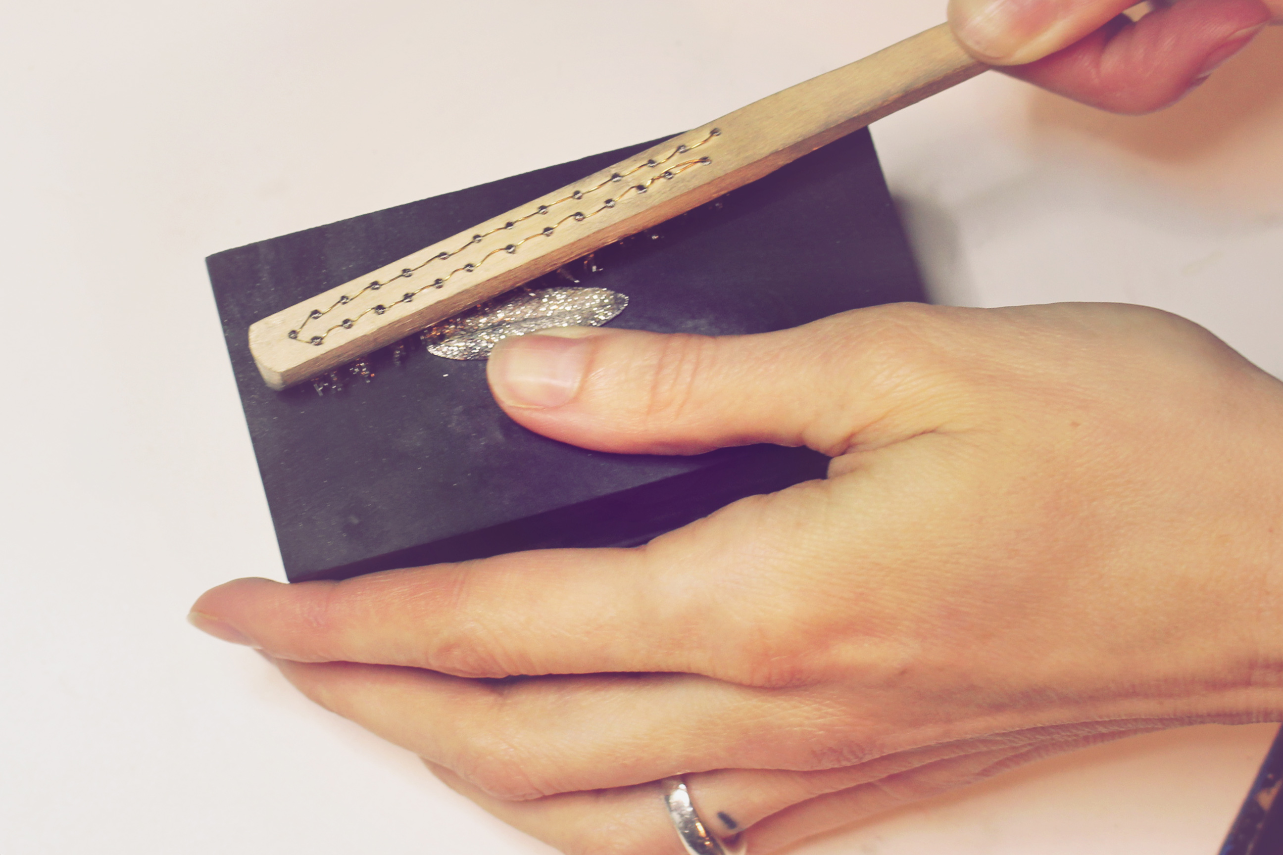 Die Schmuckstücke werden in einem aufwändigen, zeitintensiven Verfahren handgefertigt.