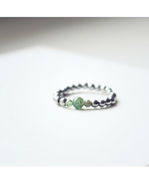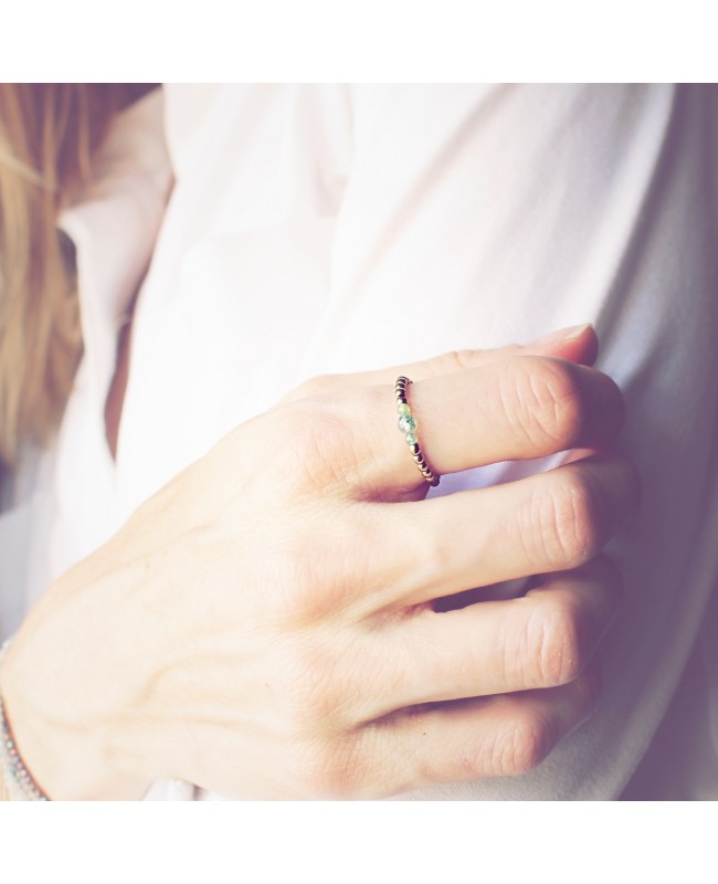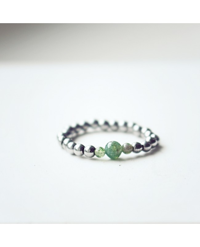 Elastischer Ring aus goldenen oder silbernen Hämatiten und Moosachat.
