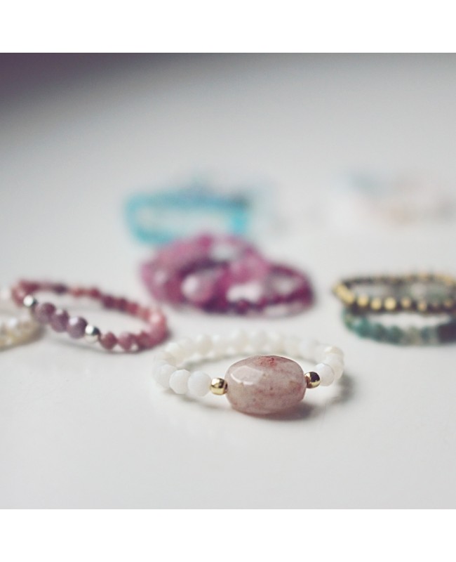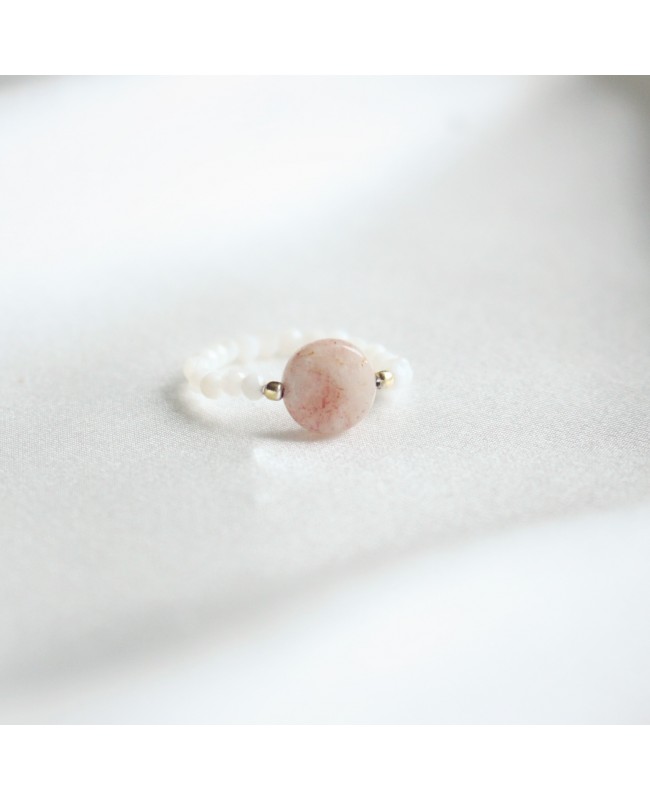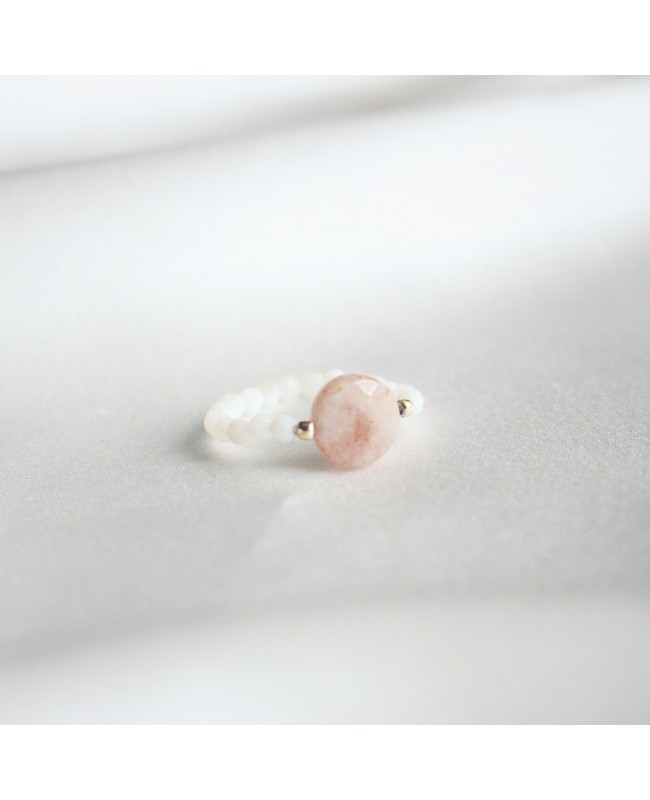 Elastischer Ring aus Muscheln und einem Sonnensteinen und 2 Kugeln aus 925-Silber.