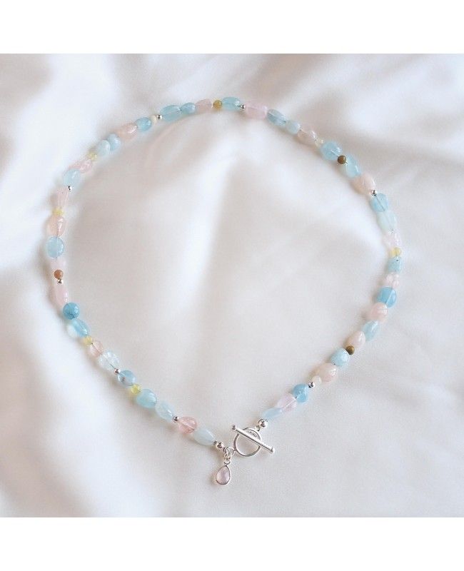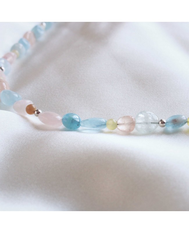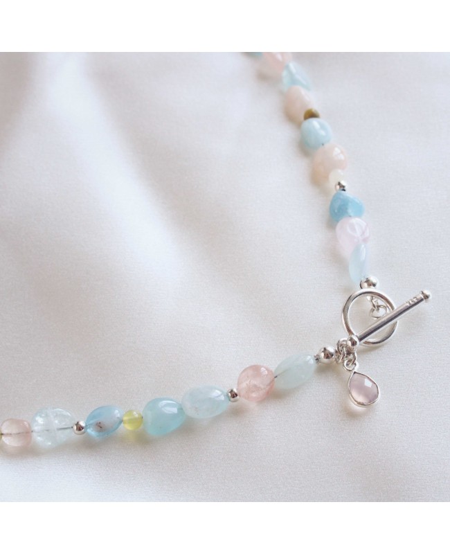 Halskette mit Morganit und Angelit und Kugeln aus 925-Silber (silber/vergoldet).