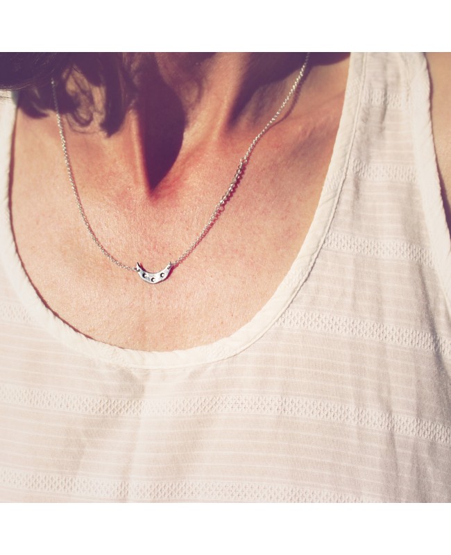 Der Mondanhänger wird aus 950-Silber handgefertigt, somit gleicht kein Anhänger dem anderen.