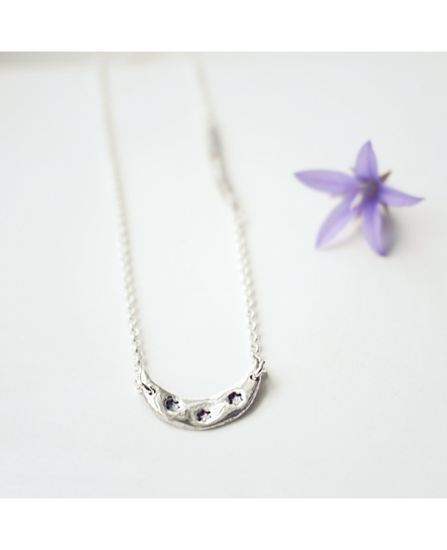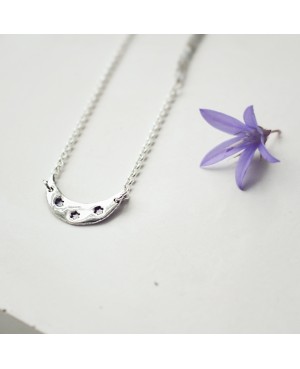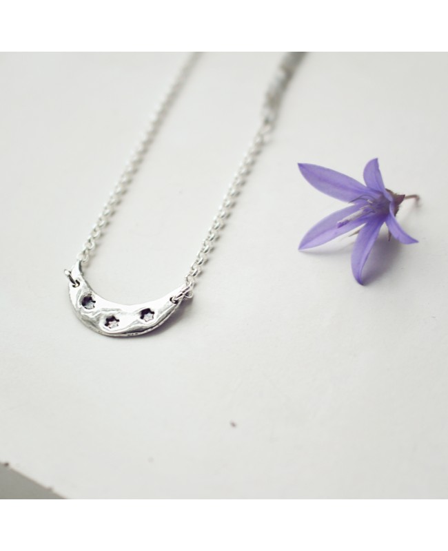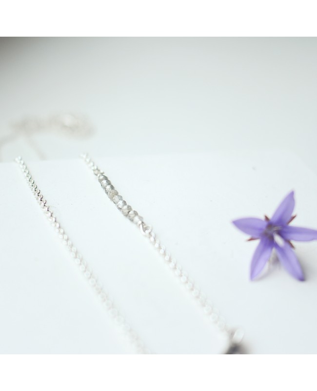 Halskette aus 925-Silber mit 9 funkelnden Labradoriten und einem Mondanhänger.