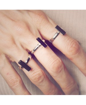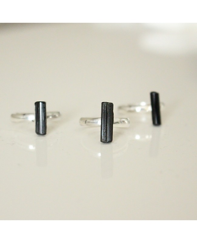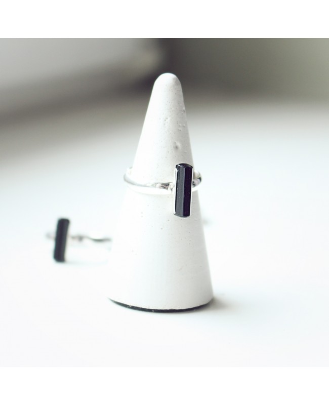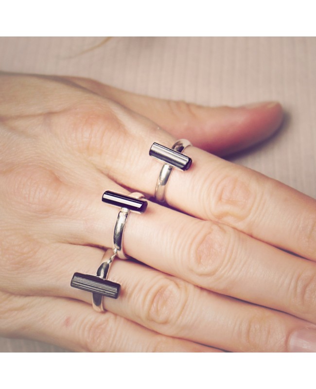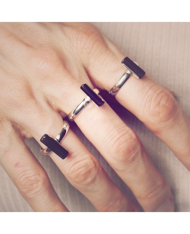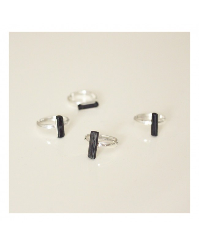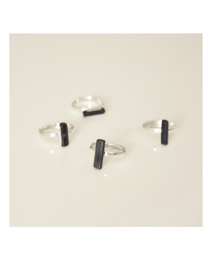verstellbarer Silberring mit einem schwarzen Turmalin