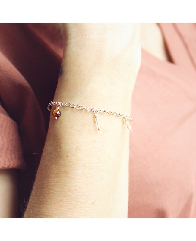 Das Armband zieren ein Tigerauge und funkelnde Zitrine.