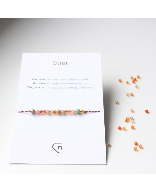 Ein Armband mit den Geburtssteinen des Sternzeichens Stier.