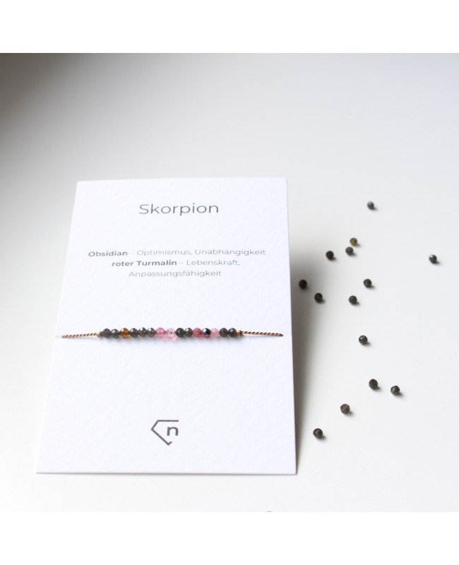 Ein Armband mit den Geburtssteinen des Sternzeichens Skorpion.