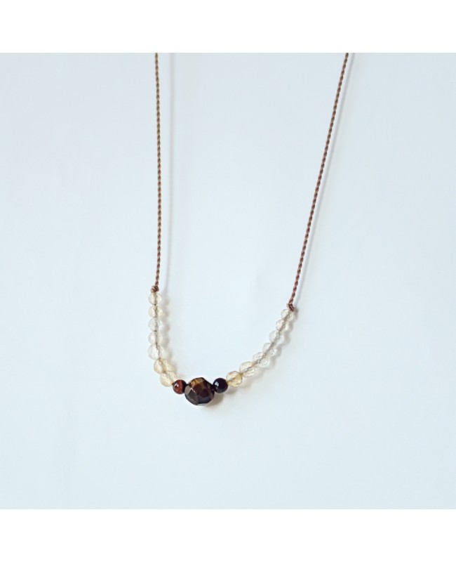Die Kette zieren Tigerauge und funkelnde Zitrine.