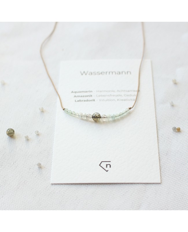 Kette mit den Geburtssteinen des Sternzeichens Wassermann.