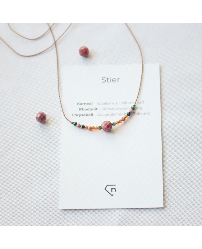 Kette mit den Geburtssteinen des Sternzeichens Stier.