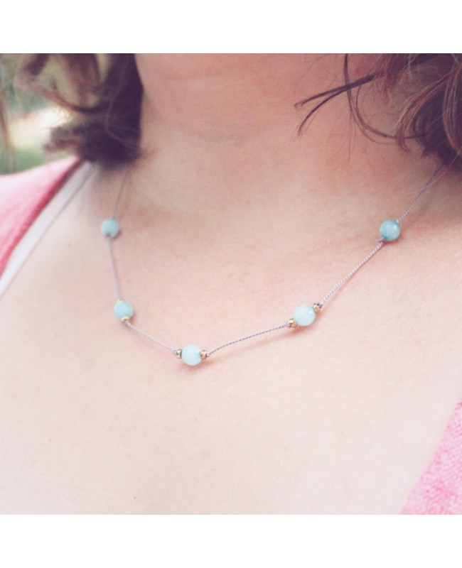 copy of Kette mit blauem Aqua Aura-Kristall, Apatit, Jade und Hämatit
